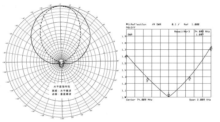 | 型 式 | 3エレメント八木 | 周 波 数 | 74.0MHz | ||