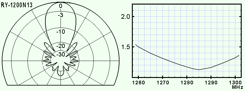 < ビームパターンは、1,280MHz における 垂直偏波・水平面 です >