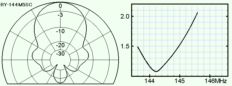 < ビームパターンは、144.2MHz における 垂直偏波・水平面 です >